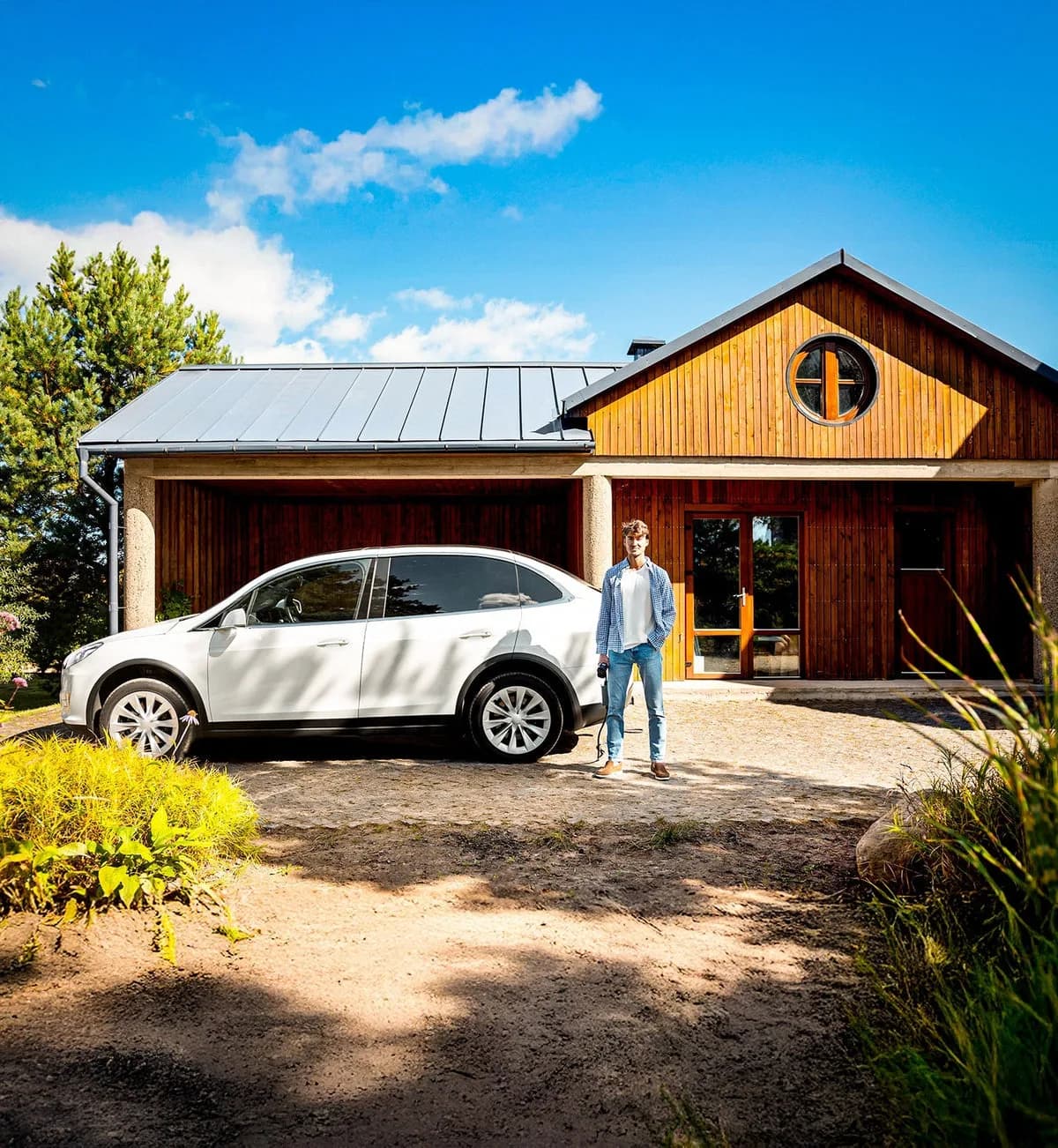 Maximum savings are achieved with paneles solares and a contrato dinámico. You charge with free solar power and cheap grid electricity, and consume when prices are high. Savings: up to €600–€1,000+ por año.